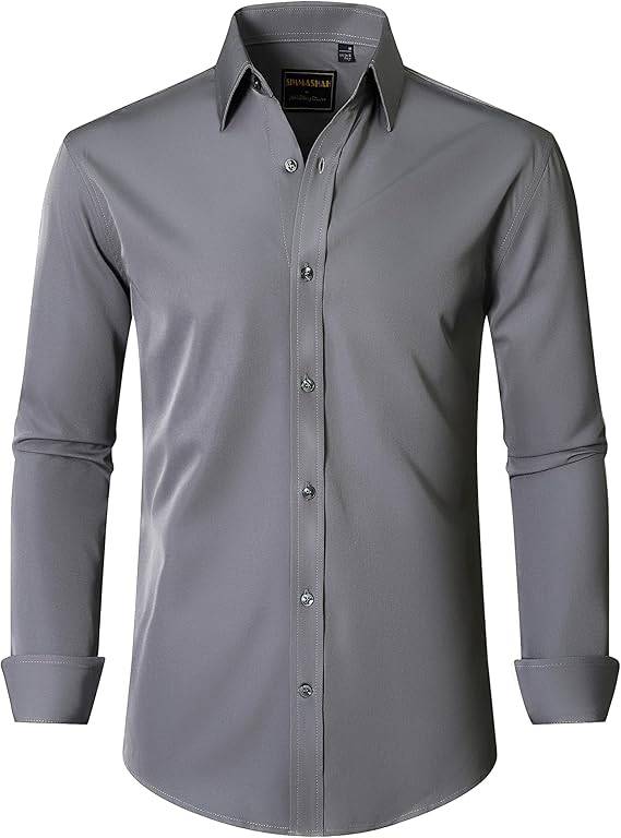 Clothing, Shoes & Jewelry Men's Dress Shirts Stretch Wrinkle Free Formal Long Sleeve Shirts Business…