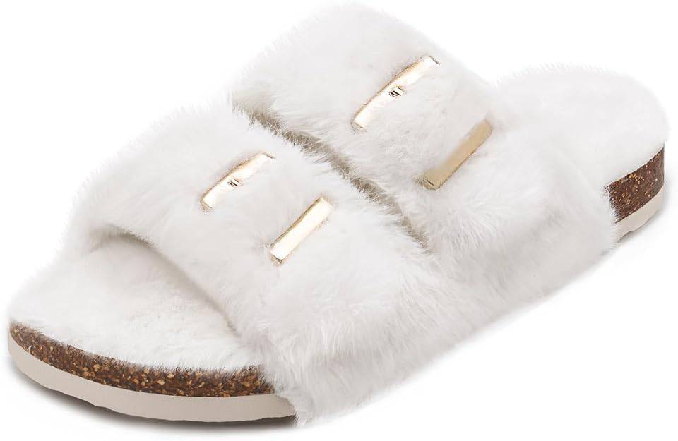 40%OFF-Rainlin Women’s Fuzzy Slippers Comfy Cork Footbed Fluffy Slides Open Toe Indoor Outdoor House Shoes with Arch Support(End:2025-10-18)