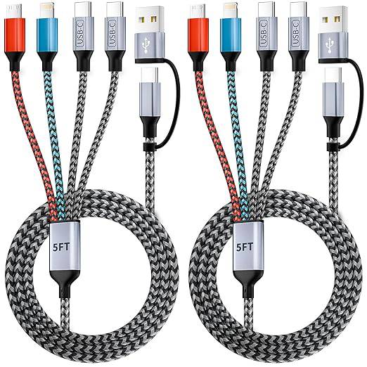 50%OFF-USB C 4 IN 1 Multi Charging Cable, Travel Essentials with Dual Type-C/Micro/IP Port(2 Packs,5FT)(End:2025-10-22)